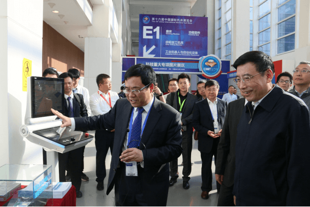 陳吉紅董事長向工信部苗圩部長介紹華中數控新一代iNC人工智能數控系統